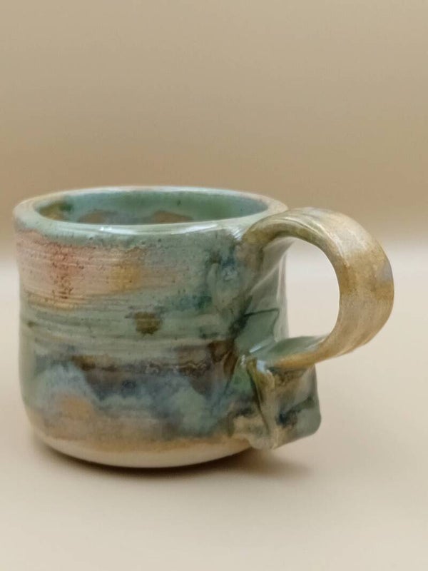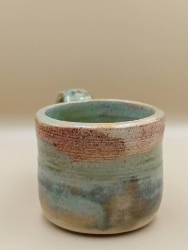 In onze collectie 'Cozy Coffee Corner 2025' werd deze mok uit steengoedklei door ons op ambachtelijke wijze gedraaid en geglazuurd afgebakken tot 1250 graden Celsius in onze keramiekoven.